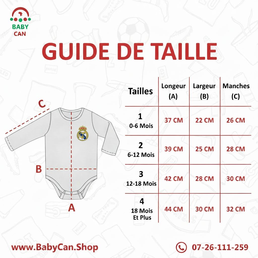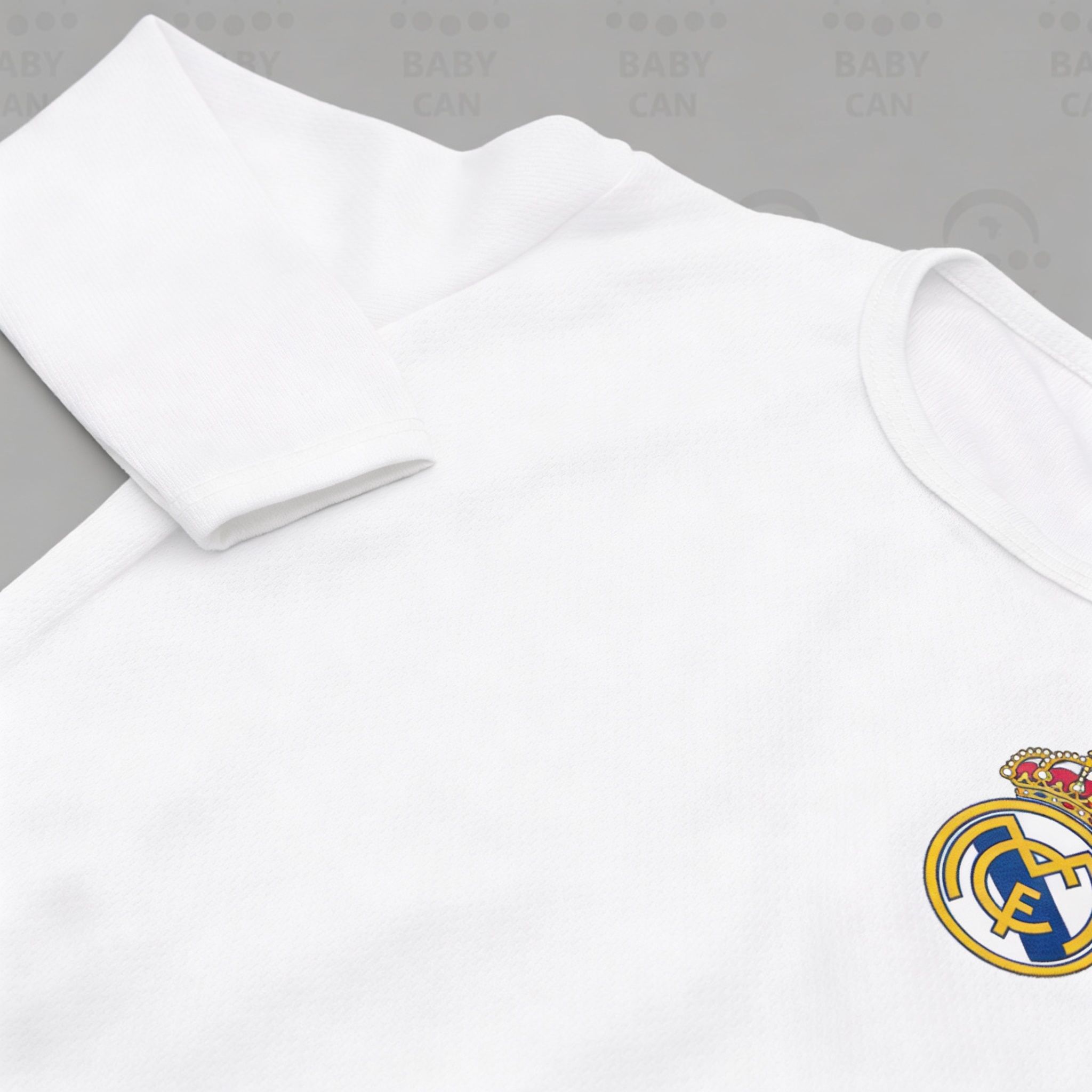 L'adorable tenue du maillot du Real Madrid pour bébé, allie confort optimal et style emblématique.